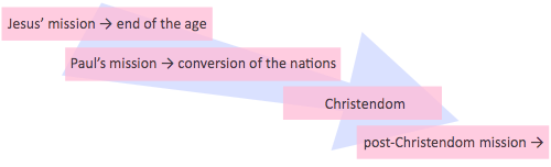 The point of all this is that making disciples is not an end in itself. We have to ask what we are making disciples for. DeYoung and Gilbert conclude with a definition of mission as going into the world to “make disciples by declaring the gospel of Jesus Christ in the power of the Spirit and gathering these disciples into churches, that they might worship and obey Jesus Christ now and in eternity to the glory of God the Father” (241, their italics). The narrative-historical approach suggests that this is far too generic as a definition of mission. It’s not enough just to be the church. The whole story of scripture is the story of how God works with and in his people in changing historical circumstances. Gospel and kingdom, judgment and salvation, “hell” and heaven, works and grace are not eternal abstractions. They are the terms and concepts by which God’s people made sense of their place in an unfolding story, and I don’t see that things should be any different for us.