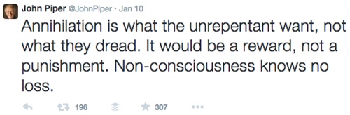 I don’t want to be unfair to John Piper, but I think it shows how little the church thinks about the new creation when absence from it doesn’t seem to be much of a punishment.