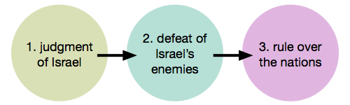 At a later stage a third element was added to the paradigm. Out of the experience of domination by foreign powers there emerged the conviction that God would not merely defeat Israel’s enemies in order to preserve his people; at some point he would establish his own rule over the nations, either through Israel’s king (e.g., Ps. 2; 110) or through a faithful, persecuted minority (Dan. 7:13-27).