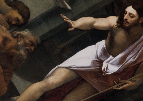 Limbo is not hell itself but the border or “hem” (Latin limbus) of hell, where the church fathers imagined the Old Testament saints were waiting for redemption. These lines from the 4th century Gospel of Nicodemus point to the background for Sebastiano’s painting: