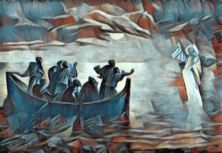Guelich thinks there is a reference to Old Testament epiphany texts in which God “passes by” Moses or Elijah (Ex. 33:19-23; 34:6; 1 Kgs. 19:11). So “instead of a story about Jesus’ rescue of his disciples who are distressed but not in danger (cf. 4:35–41), this is an epiphany story about Jesus’ self-revelation to his own followers”.1 This is backed up with an appeal to Jesus’ “I am” (egō eimi) statement, which is taken to insinuate an identification with YHWH’s self-revelation to Moses as “I am the one who is” (egō eimi ho ōn). But the self-revelation in Mark’s story is not that Jesus is God but that he is not a ghost, which fully accounts for Jesus’ words: “Take heart; it is I. Do not be afraid.” Why not just leave it at that?