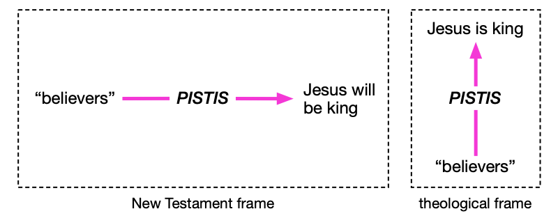 So loyalty to Christ is no doubt in the background of the New Testament passages as an implication of pistis, but it is not what pistis signifies. Here we get to the question about framing.
