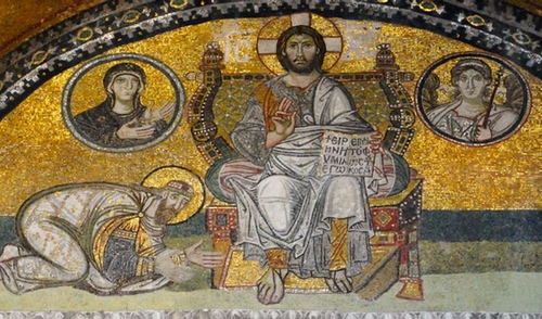 3. Again, this is a question of how seriously we want to take history. Just as God’s people existed as a flawed kingdom for hundreds of years until its sins caught up with it, so we might argue that God’s people lived in a flawed relationship with empire for hundreds of years, until its sins caught up with it—and now, in the west, lives in a flawed and disappointing relationship with secularism. We are all Anabaptists now and look back on Christendom as a bad thing, but that’s how things were for 1500 years, whether we like it or not, and if you’re looking forward from the position of the early church, in historical terms it was exactly what they were looking for: an end to persecution, public vindication, the overthrow of the old pagan gods, and the confession by the nations of Jesus as King of kings and Lord of lords. Inevitably, then, the church saw itself as a priestly people serving the one true God, now acknowledged as sovereign by the kings of the earth, as in the mosaic of Leo VI.