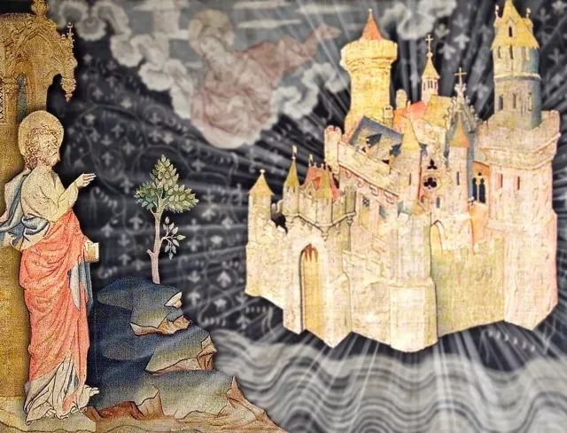 • Although the city is again the “bride, the wife of the Lamb,” when John is brought there “in the Spirit,” it becomes a detailed, close-up re-working of Ezekiel’s lengthy and meticulously delineated vision of the new Jerusalem and temple (Ezek. 40:1-47:12): the hand of the Lord “brought me to the land of Israel, and set me down on a very high mountain, on which was a structure like a city to the south” (Ezek. 40:2).