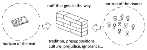 Unfortunately the space between the reader and the text is never transparent or unimpeded. Interpretation is always hindered, to a lesser or greater degree, by tradition, prejudice, presuppositions, ignorance, and the laziness of the reading community. Hermeneutics tries to find ways to overcome these obstacles to good interpretation.