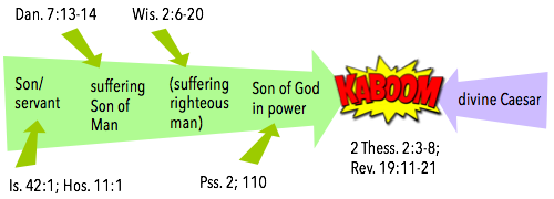 The declaration that Jesus is the Son of God is fully explained by the Jewish scriptures. He is, first, the servant, ideal Israel, anointed by the Holy Spirit, who is sent by YHWH to his troubled vineyard. He becomes the Son of Man who is opposed by apostate Israel and oppressed, but will be vindicated and given kingdom and glory. He becomes the “Son of God in power” by his resurrection from the dead, to judge and rule over both Israel and the nations.